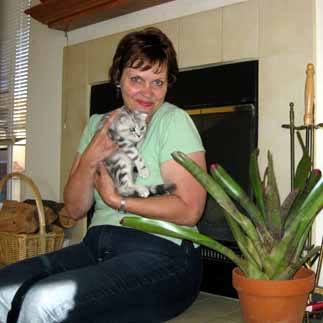 Chelsea has a standard poodle named Remington 'Remi' who she taught to be a working dog. She is also a 'graphics artist'. Chelsea had been looking at our web site for awhile and she told us that she loved it so much that she decided she wouldn't get a cat anywhere else. Chelsea offered to help with the web site by making a picture with cats and anything else we wanted in it and we, of course accepted.