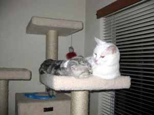 ![]() | Beasley, "Beezers" the Youngest who is Brown Mackerel Tabby & White, is like the big brother - they play and get into trouble together! | ![]() |